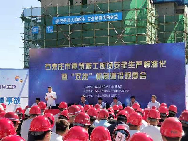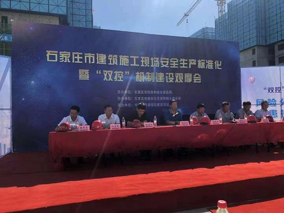 2019年8月27日上午,石家庄市住建局在鹿泉区碧桂园星荟项目施工现场,组织召开建筑施工安全生产标准化及“双控”机制建设观摩会议,各县(市)、区住建局负责安全生产、扬尘防治管理人员及项目施工方负责人代表200余人参会。